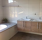 Our design input was in the custom designed staircase, kitchen, cupboards, and vanities.